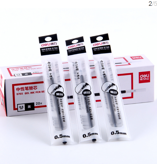 得力deliS760办公用品文具中性笔芯0.5mm/弹簧头/非按动标准水笔替芯学生中性笔